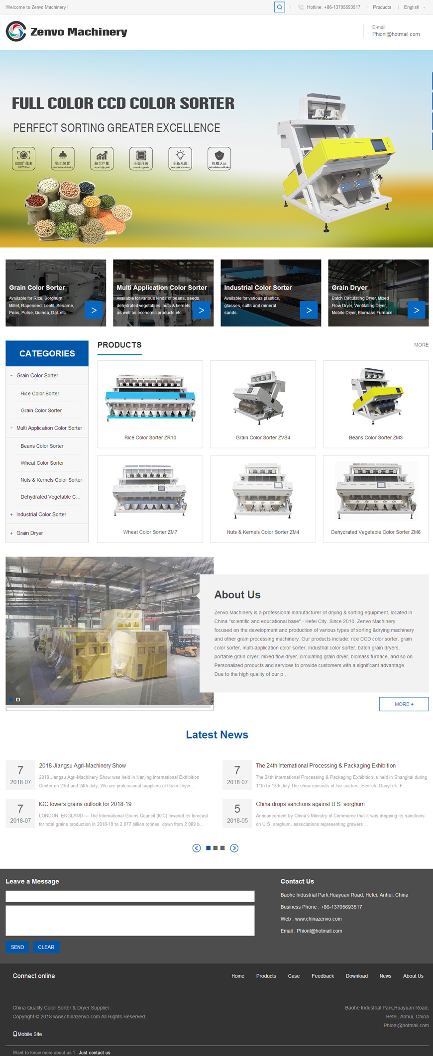 Zenvo Machinery is a professional manufacturer of drying & sorting equipment, located in China "scientific and educational base" - Hefei City. Since 2010, Zenvo Machinery focused on the development and production of various types of sorting &drying machinery and other grain processing machinery.