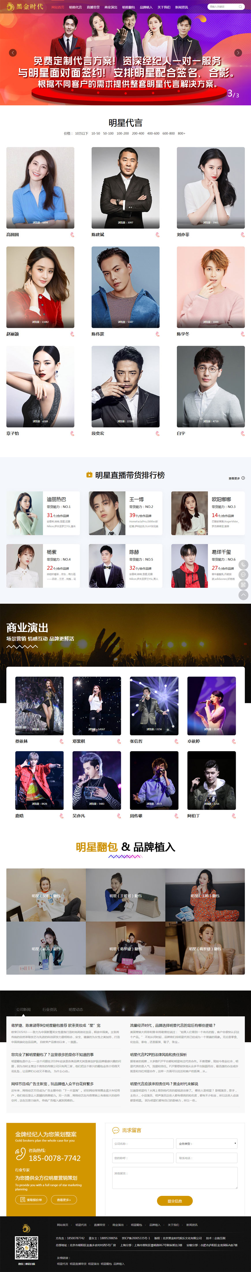 黑金時(shí)代娛樂(lè)文化有限公司(Black Gold Era,簡(jiǎn)稱(chēng)“BGE”),專(zhuān)注服務(wù)于品牌客戶(hù)的中國(guó)知名全能型娛樂(lè)經(jīng)紀(jì)公司,匯集演藝及體育領(lǐng)域強(qiáng)大的資源,有眾多簽約合作明星;匯聚演員、歌手、導(dǎo)演、體育明星、藝術(shù)領(lǐng)袖、網(wǎng)絡(luò)紅人等多類(lèi)別領(lǐng)域人才資源;集藝人經(jīng)紀(jì)、藝人包裝、廣告代言、活動(dòng)演出、公關(guān)策劃執(zhí)行、法律咨詢(xún)、數(shù)字媒體營(yíng)銷(xiāo)推廣等多項(xiàng)經(jīng)紀(jì)業(yè)務(wù)于一體的娛樂(lè)公司。