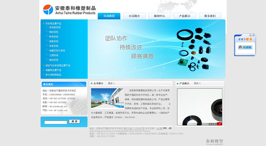 安徽泰和橡塑制品有限公司,位于風景秀麗的寧國經濟技術開發區,是一家專業生產、銷售、研發橡膠塑料制品的公司。產品主要用于汽車、家電、工程機械及其他行業。公司擁有先進的生產設備、專業的研究人員、技術力量雄厚、工藝精湛、檢測手段齊全。采用先進的企業經營理念,一流的生產設備和技術,嚴格遵守 ISO9001、ISO/TS16949:2009質量管理體系及ISO14001環境體系,為國內外客戶提供優質、安全、綠色的產品和服務!公司秉承著“責任•進步”的理念,始終堅持以客戶需求為導向,以技術創新為動力,不斷做大、做強、做精主營業務,提升企業核心競爭力。努力站在行業技術革新的最前沿,精心打造具有國際競爭力的創新型企業。