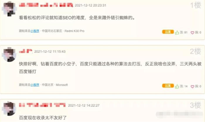 因為最近這幾年百度快排越來越多,很多企業老板以為SEO就是做百度快排的。其實這也是一個大大誤解??炫?,你可以簡單理解就是鉆了百度搜索的漏洞而已,只是現階段還有一些作用,而SEO是指網站正常優化排名哈。上篇我寫的快排文章發在松松博客評論截圖。