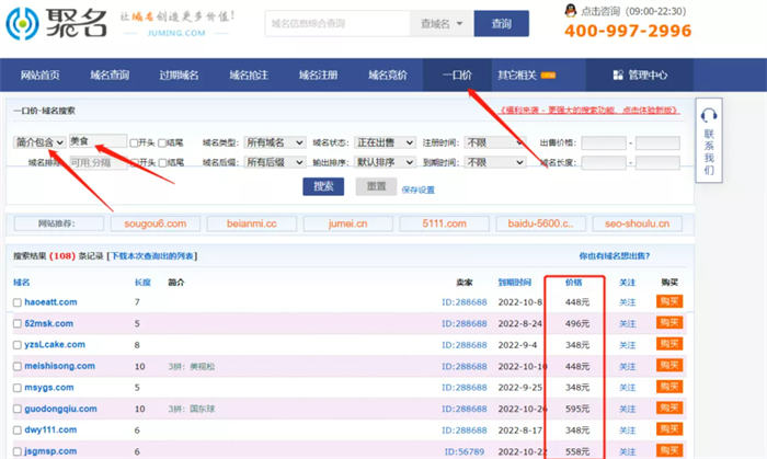 買老域名一般選擇在聚名網,在一口價頁面購買,然后選擇簡介包含,輸入你的行業,就能買到歷史建站記錄跟你行業一樣的域名。再決定購買前,一定要按上面的步驟仔細檢查下這個域名,確保萬無一失!