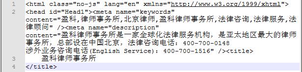 從語法上看,這幾句話破綻百出,但是覆蓋率很廣泛,這幾句話并不直接顯示在頁面上,而是在源文件顯示,這個案例在前面文章也展示了,在展示一次。還用盈科的網站做示例。