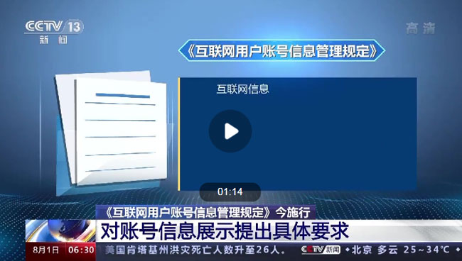 《互聯網用戶賬號信息管理規定》2022年8月1日起施行