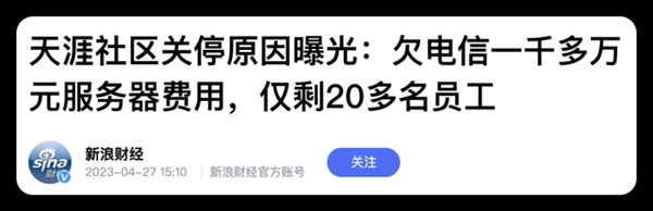 而且據了解,天涯的域名其實已經在 3 月底被封,4 月 24 日才正式停止運營。