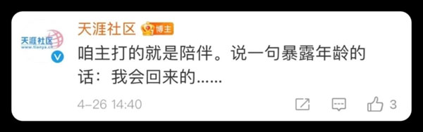 當然,目前還不能正式宣判天涯「死刑」,因為人家官微給了這么一句話,「我一定會回來的」。