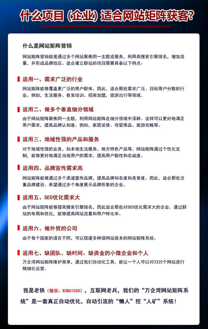 第三,我們再來回答一個問題:什么樣的項目和企業適合用網站矩陣營銷呢?